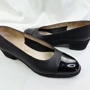 Salvatore Ferragamo Size 5.5B Womens Slip On Black Patent Leather Toe Block Heel