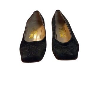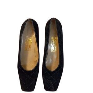 Salvatore Ferragamo Size 8 B Black Quilted Square Toe Block Heel Leather Pumps
