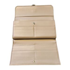 Salvatore Ferragamo Smooth Khaki Leather & Gold Gancini Fold Over Long Wallet