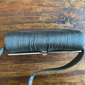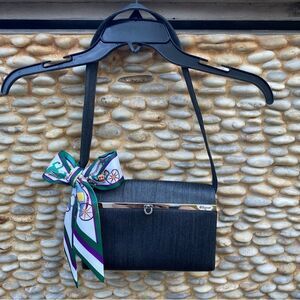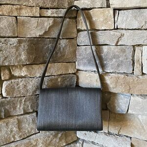 Salvatore Ferragamo Steel Grey/Blue Fabric Shoulder Bag with Silver Chrome Hardware. This is a gorgeous bag in amazing vintage condition that would be perfect with jeans or a cocktail dress! Easily fits your cell phone plus all other necessary items.