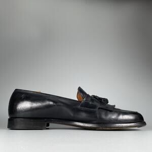 Salvatore Ferragamo Studio Men’s 13 D Black Leather Slip On Tassels Loafers GUC