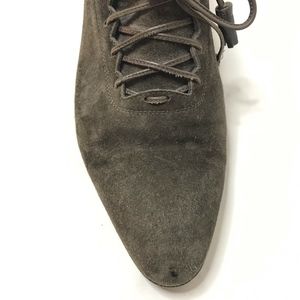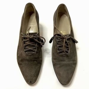 Salvatore Ferragamo heels / pumps. Round point toe. Brown suede. Slip on or lace up. Women's size 8.5 2A AA Narrow