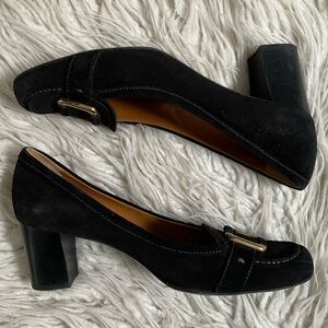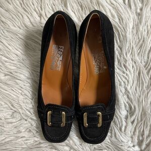 Salvatore Ferragamo Suede Leather Black Square Toe Buckle Pump Heels EUC Size 8