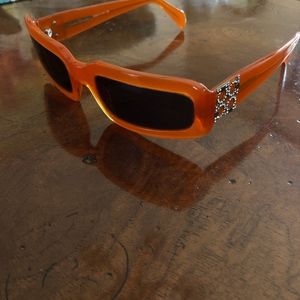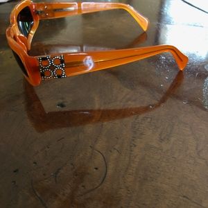 Women's Salvatore Ferragamo sunglasses with no signs of wear. Comes with hard Ferragamo case. Orange. Made in Italy