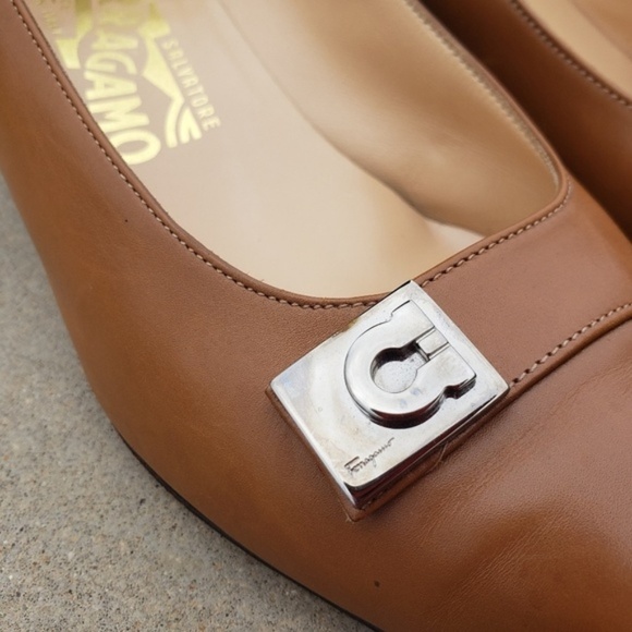 Salvatore Ferragamo Tan Heels with Silver Detail