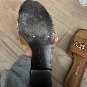 Salvatore Ferragamo Tan Leather Slides with Gold Accent