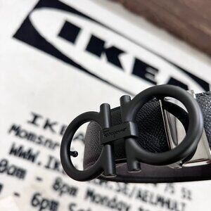 Salvatore Ferragamo Tonal Gancini Matte Black Buckle Reversible Cut to Size Belt.