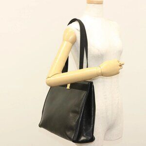 Salvatore Ferragamo Tote Bag Embossed Leather Black Gold Auth