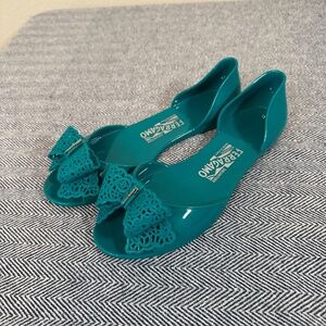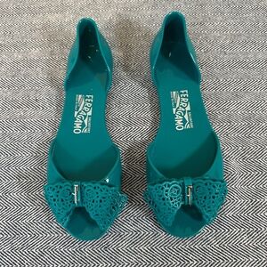 Salvatore Ferragamo - Turquoise Jelly D'Orsay Peep Toe Flat
