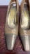 Step out in style with these elegant tan and gold pumps. Perfect for any occasion, these shoes offer both comfort and sophistication.