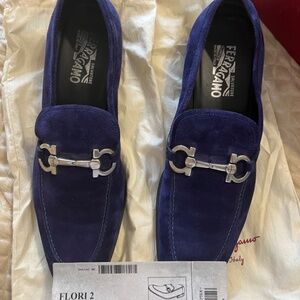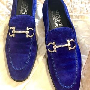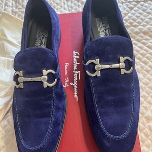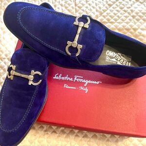 Salvatore Ferragamo Ultra-blue V Suede Calf Loafers
