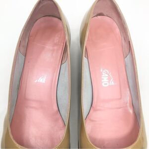 Salvatore Ferragamo VARA Golden Tan Patent Leather Bow Ballet Pump