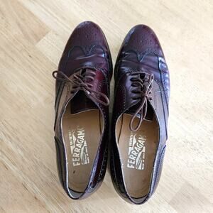 Salvatore Ferragamo VTG Dress Shoe Oxford Formal Cap Toe 9D Bordeaux Brown