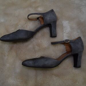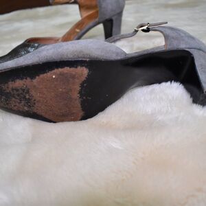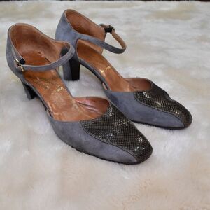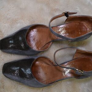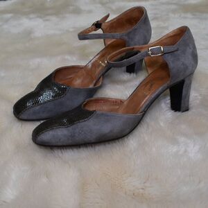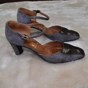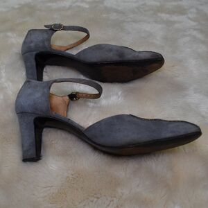 Salvatore Ferragamo VTG Gray Suede Leather Heels Sz 8.5 Block Ankle Strap