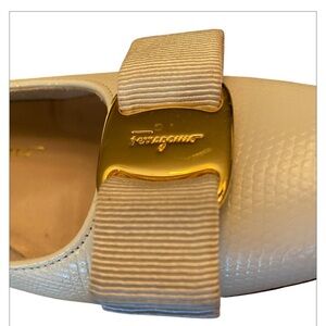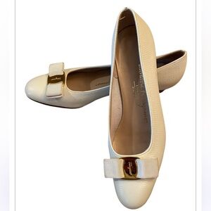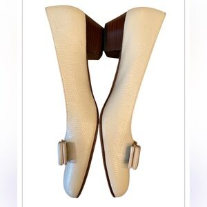 Salvatore Ferragamo Vintage Vara Cream Ivory Bow Block Heels.