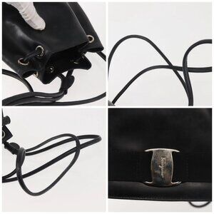 Salvatore Ferragamo Vala Backpack Leather Black Silver Auth bs29472