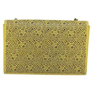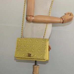 Salvatore Ferragamo Vala Chain Shoulder Bag Leather Yellow Silver Auth 137170