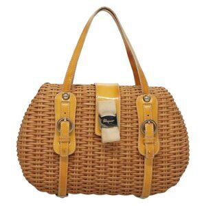 Salvatore Ferragamo Vala Hand Bag Raffia Leather Beige Silver Auth 132955