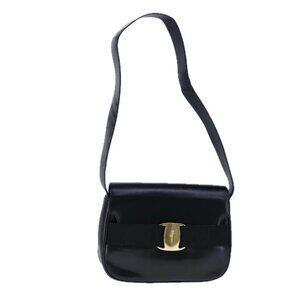 Salvatore Ferragamo Vala Shoulder Bag Leather Black Gold Auth 109105