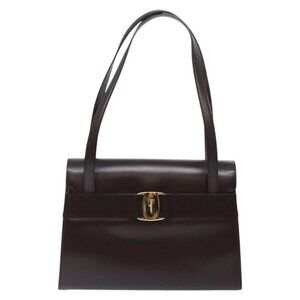 Salvatore Ferragamo Vala Shoulder Bag Leather Brown Gold Auth gh631