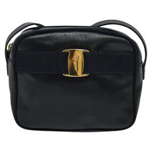 Salvatore Ferragamo Vala Shoulder Bag Leather Navy Gold Auth 138120