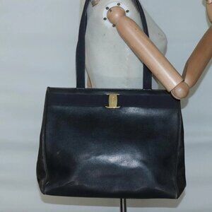 Salvatore Ferragamo Vala Tote Bag Leather Black Gold Auth 139754