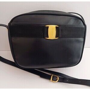 Salvatore Ferragamo Vara Bow Blk Leather Crossbody Bag Gold Logo Hardware