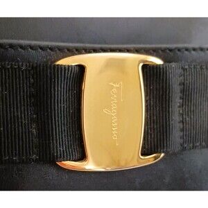 The Salvatore Ferragamo Vara Bow Blk Leather Crossbody Bag is a stylish and luxurious handbag designed for women. Made in Italy of smooth black leather with gold logo hardware and the classic gold vara bow buckle on a black grosgrain ribbon trim. the same grosgrain is used for a rolled edge trim around the edges of the bag. The crossbody style makes it convenient for carrying, and the outer front pocket adds functionality. This designer bag exudes classic elegance and sophistication, perfect for adding a touch of luxury to any outfit. Bag measures 9.5X3X7 and has an adjustable strap to use bag as a shoulder bag or crossbody bag. Excellent pre owned condition , clean inside and out, , no wear on the trim, no stains, the leather looks great , gold hardware looks great, very slight surface marks on the gold logo.. Beautiful Bag!