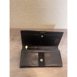 Authentic Salvatore Ferragamo Vara Bow Continental Wallet in black leather with gold-tone Vara clasp. Classic, elegant, and functional. Comes with original red Ferragamo box.