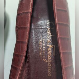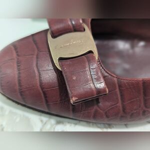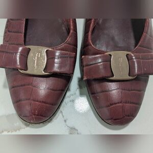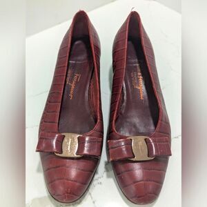 Salvatore Ferragamo Vara Bow Croc Leather Burgundy/Wine Shows Pumps Size 10B