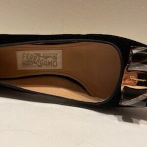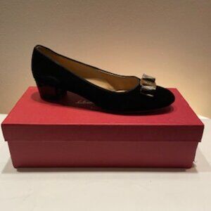 Salvatore Ferragamo Vara Bow Pumps Luxurious Black Velvet Upper 8.5B