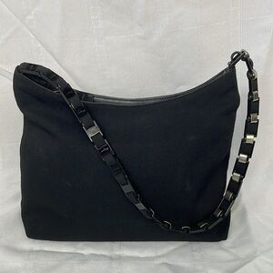 Salvatore Ferragamo, Black Bag, Shoulder Bag, Hobo Bag, Canvas Bag, Designer Handbag, Luxury Bag, Vintage, Classic, Elegant, Chic, Italian Fashion, Women's Bag, Purse, Crossbody, Satchel, Tote, Silver Hardware, Minimalist, Everyday Bag, Office Bag, Work Bag, Evening Bag.