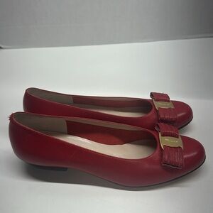 Salvatore Ferragamo Vara Heels Ballet Bow Kitten Low Heeled Shoes Leather Red