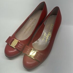 Salvatore Ferragamo Vara Heels Ballet Bow Kitten Low Heeled Shoes Leather Red 6