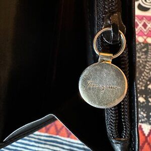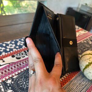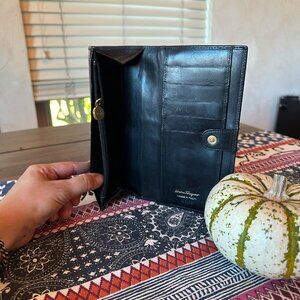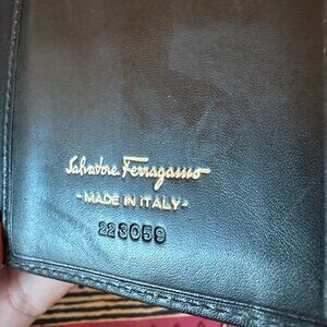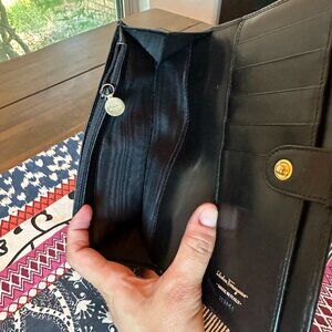 Salvatore Ferragamo Vara Ribbon Leather Bi-fold Long Wallet Black Gold, EUC