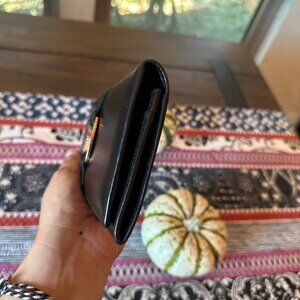 Salvatore Ferragamo Vara Ribbon Leather Bifold Long Wallet Black Gold, Euc