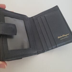 Salvatore Ferragamo Vala Wallet Leather Black Small Compact Card Bill Purse