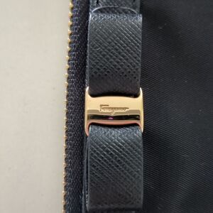 Black with gold Ferragamo logo bow