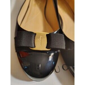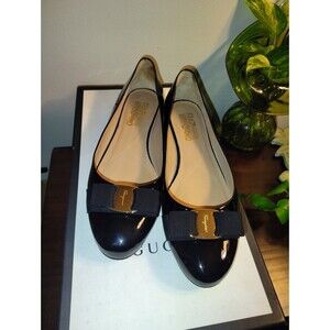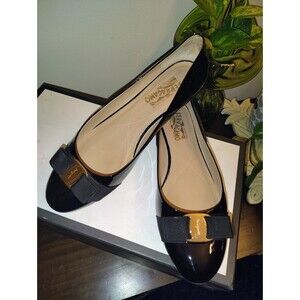 Salvatore Ferragamo Varina Black Patent Leather Flat Size 10 MSRP $800