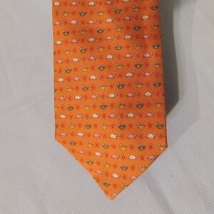 Elegant orange tie featuring subtle turtle designs. Ideal for adding flair. Excellent pre-owned condition.