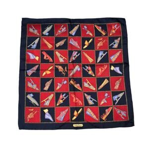 Salvatore Ferragamo Vintage 100% Silk Shoe Designs Scarf 16” Square Red Blue