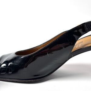 Salvatore Ferragamo Vintage Black Patent Slingback Heels | Italian Designer Pump