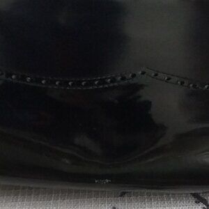 The Salvatore Ferragamo Patent Leather Black Vintage Chain Shoulder Bag is a luxurious and stylish accessory for women patent leather in black, shoulder bag features a gold chain strap and hardware accents, adding a touch of elegance to any outfit.