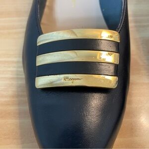 Salvatore Ferragamo Vintage Navy-Blue leather pumps gold details size 6 1/2 B