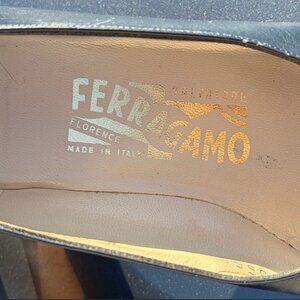 Salvatore Ferragamo Vintage Retro 80s/90s Navy Blue Leather Pumps Size 8 AA