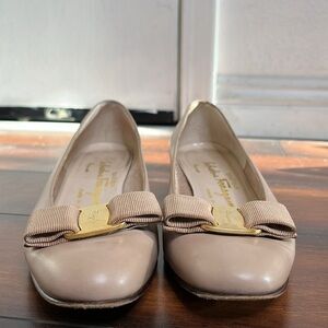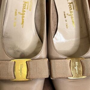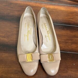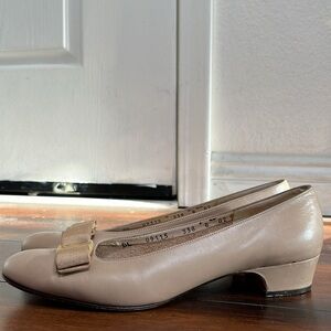 Salvatore Ferragamo Vintage Vara Pumps Bow Size 8 A2 Beige Neutral Classic