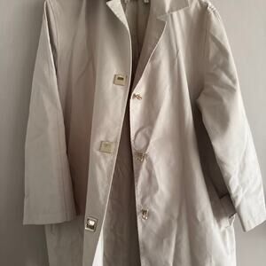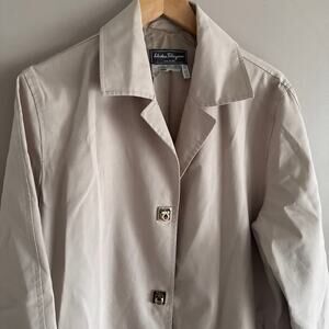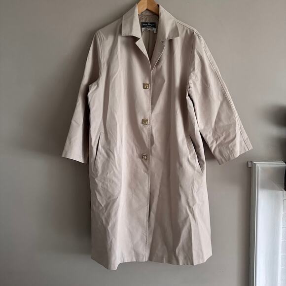Salvatore Ferragamo Vtg Beige Single Breasted Trench Coat Gancio Buttons Size 12