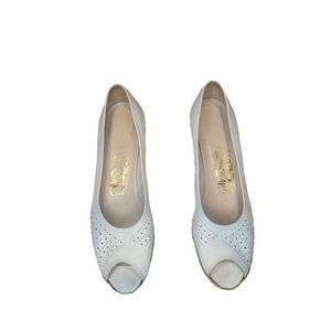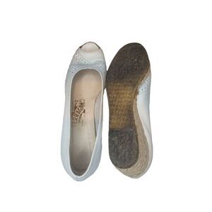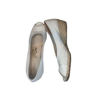 Salvatore Ferragamo Wedge Sandals Women Sz 8.5 N White Leather Open Toe Designer
