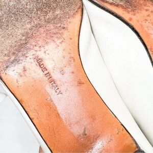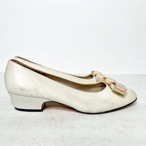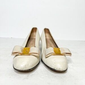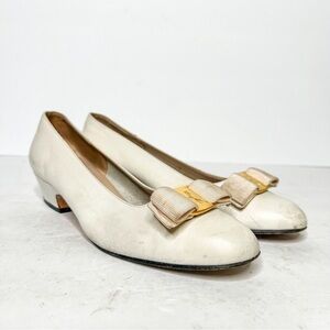 Salvatore Ferragamo White Heels Bow Gold Logo Size 7 E Women’s