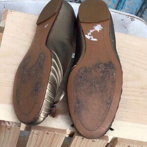 Salvatore Ferragamo Womans 8.5 AA Narrow Metallic Bronze Gold Toned Leather Ball